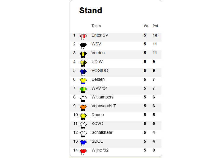 WVV’34 deed dat in eigen huis tegen hekkensluiter Wijhe (4-1 winst), UD deed dat tegen middenmoter Ruurlo (1-2).