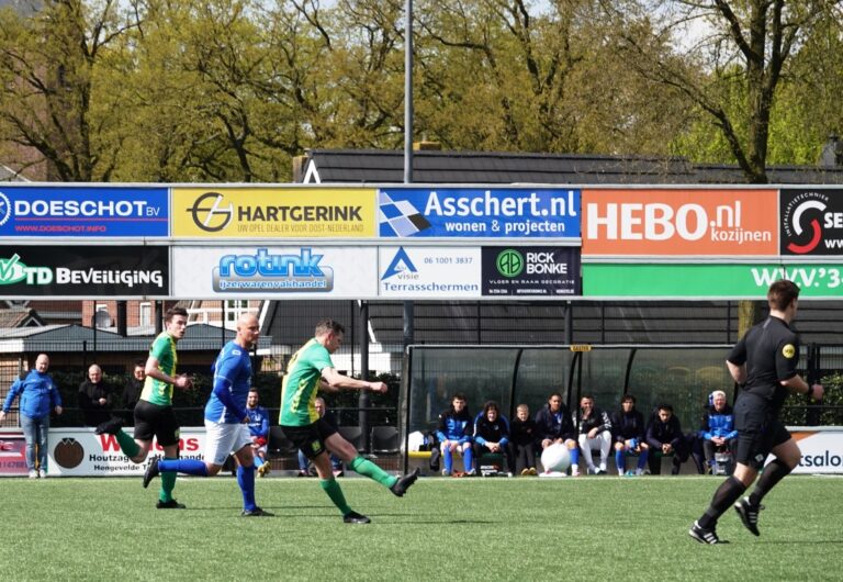 WVV’34 staat nu gelijk met Ruurlo op plek 2 en 1 punt voor op sv Delden dat gelijkspeelde bij kampioen MVV’29. Wijhe verloor thuis van Ruurlo.