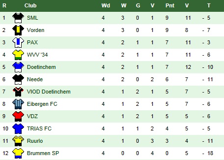 WVV'34 heeft vanmiddag een belangrijke driepunter gepakt in Neede bij de gelijknamige vereniging, Sportclub Neede. De ploeg van trainer Kiepman stond al binnen een minuut op een 0-1 voorsprong doordat Gijs Pierik een voorzet van Roy Workel binnenkopte. WVV'34 hield het initiatief en Sportclub Neede was compleet kansloos. De marge werd verdubbeld toen wederom Roy Workel een assist gaf, nu op Joost Assink uit een corner. Joost schoot droog binnen waardoor er geen vuiltje aan de lucht was.