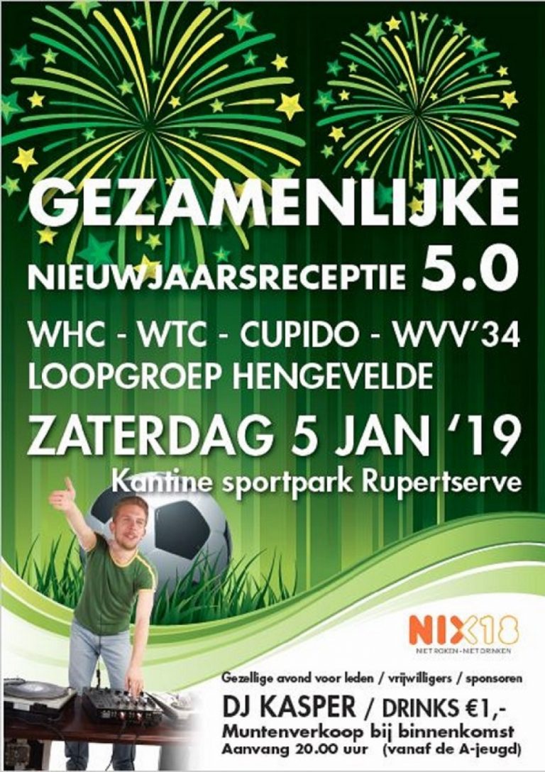 Gezien het grote succes van de voorgaande edities van de gezamenlijke nieuwjaarsreceptie van WVV'34, WHC, WTC, Cupido en Loopgroep Hengevelde is besloten ook dit jaar weer een nieuwjaarsreceptie voor leden, sponsoren en vrijwilligers te organiseren. Samen kunnen ze terugkijken op een sportief jaar met een bloeiend verenigingsleven in Hengevelde. Dit was niet mogelijk geweest zonder de inzet en toewijding van onze leden, sponsoren en vrijwilligers.