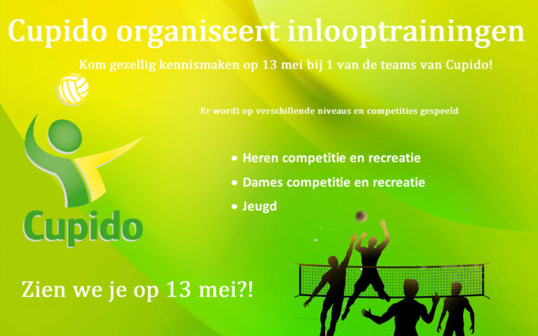 Kom maandag 13 mei kennismaken bij een van de teams van volleybalvereniging Cupido. Er wordt op verschillende niveaus en competities gespeeld bij zowel de dames als de heren.