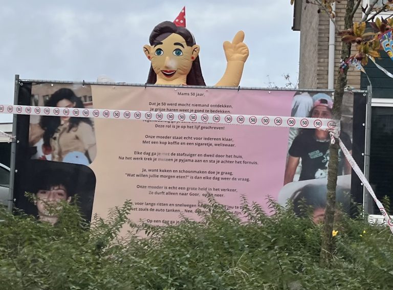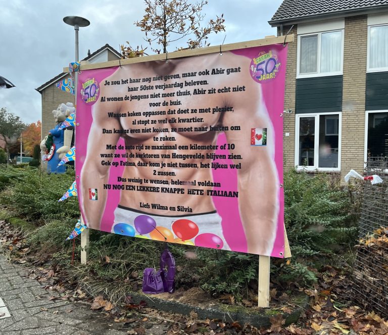 Je zou het niet zeggen, maar Abir Abed Elal is 50 jaar geworden! Haar tuin aan de Elfersstraat is feestelijk versierd en zelfs de Koning komt (mede vanwege haar verjaardag) naar Hengevelde en gaat zelfs even in gesprek met zoon Mahmoud. Ook namens de redactie van harte proficiat!