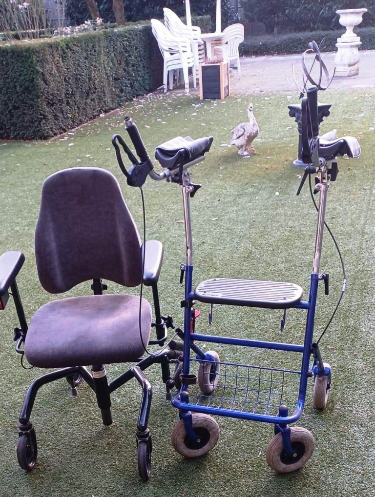 Achtergelaten rollator en bureaustoel bij de Pellehof in Hengevelde