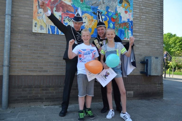 De prijzen zijn gisterenochtend uitgereikt op het Theo Zegger Plein bij de Petrusschool, met prins Ignaat en adjudant Ronald in vol ornaat bij zomerse temperaturen. “Nu weet je waarom carnaval in februari is gehouden” was de toevoeging van directeur Dineke Hek tegen de bezwete prins.