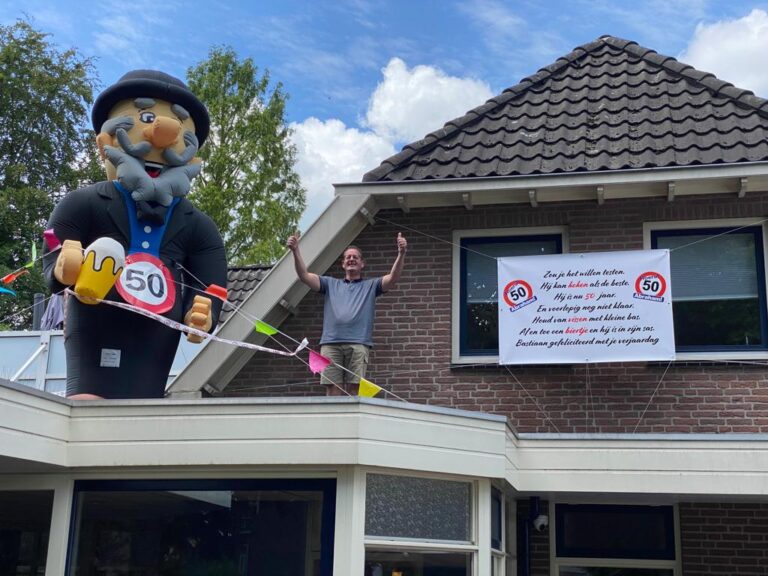 Bastiaan Pierik, beter bekend als de mede-eigenaar en chef-kok van Hotel Restaurant Hof van Twente in Hengevelde, is 50 jaar geworden. Een fraai spandoek met bijbehorende tekst en een Abraham sieren het pand. Ook namens de redactie van harte proficiat!