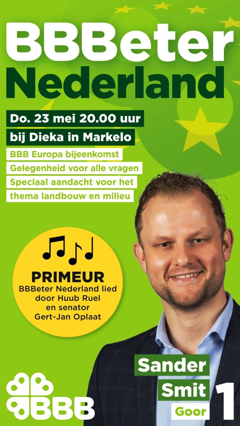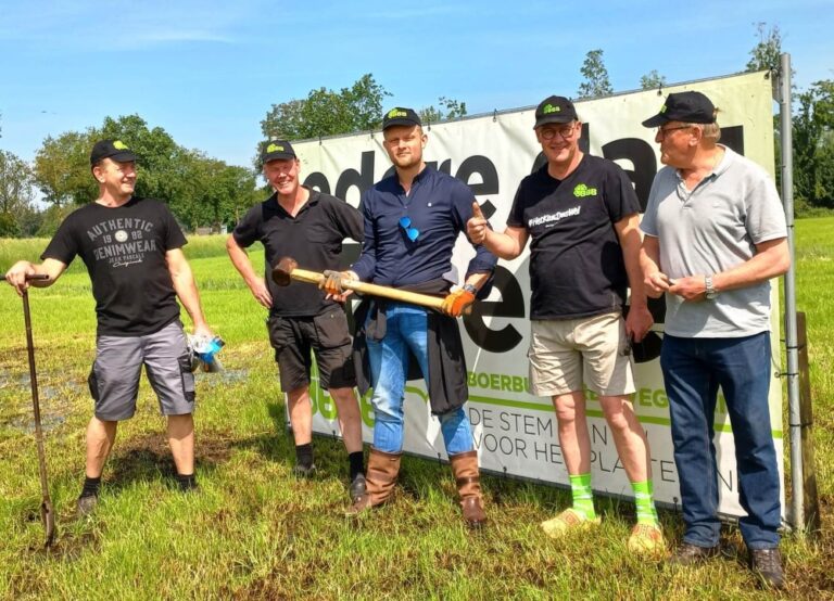 Sander Smit, BBB Europees lijsttrekker uit Goor, heeft de Hengeveldse boeren vanochtend geholpen met de BBB doeken plaatsen rond Hengevelde