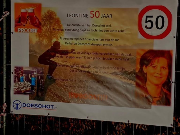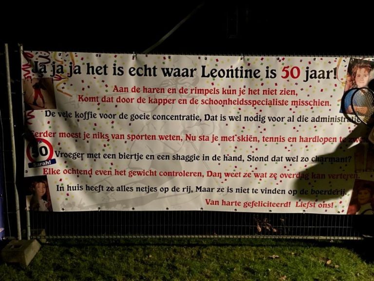 Leontine Doeschot, afkomstig uit Hengevelde en tegenwoordig woonachtig in het prachtige kerkdorp Beckum is bijna 50. Morgen 26 februari is ze jarig. Gisteren zijn er mooie spandoeken neer gezet en vanavond een feestje 🥳.