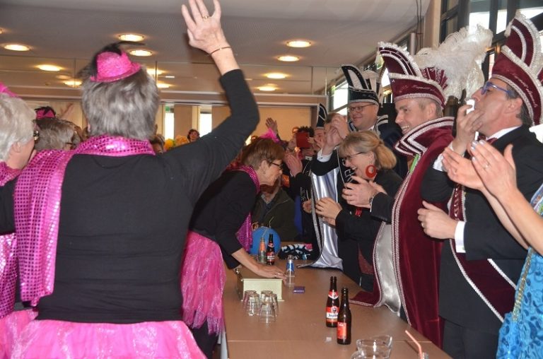 Het is inmiddels traditie geworden op de zaterdag van de Carnaval in de Hof van Twente. De carnavalsverenigingen van Goor, Bentelo en Hengevelde komen samen om elkaar op een leuke manier ´in de zeik´ te zetten middels toespraken en sketches met als afsluiter de sleuteloverdracht van burgemeester Nauta aan de Hofprins. Deze eer viel dit jaar te beurt aan Bentelo, hun prins mag de komende dagen heersen over de Hof van Twente. Ook prins Erwin was aanwezig en hij hield net als de andere prinsen een proclamatie. Hij wilde het volgens eigen zeggen op een moderne manier presenteren en las het op vanaf zijn laptop. Nieuwbaken president van de Hagmöllnlummels Tom Jannink haakte hier gelijk op in en vond het jammer dat moderne Erwin dit deed van een laptop uit 2002. Bentelo stal sowieso vanochtend de show, zij presenteerden een parodie op een film aan het adres van de Amerikaanse president Donald Trump om na America first, ‘The Garden of Twente’ second te laten zijn. (Hieronder de link) Maar ook de vrienden van Prins Erwin lieten van zich spreken, zij hadden een prachtig lied voorbereid waar Erwin op een leuke manier werd beschreven, met zijn positieve en opvallende kanten. Als kers op de taart gaven de maxi maxi dansmarietjes van Hengevelde een verrassingsoptreden, hetgeen door iedereen zeer werd gewaardeerd. KLIK HIER voor een fotoalbum. Hier de link van de video van Bentelo: https://youtu.be/Bszb6oPH0_Y.