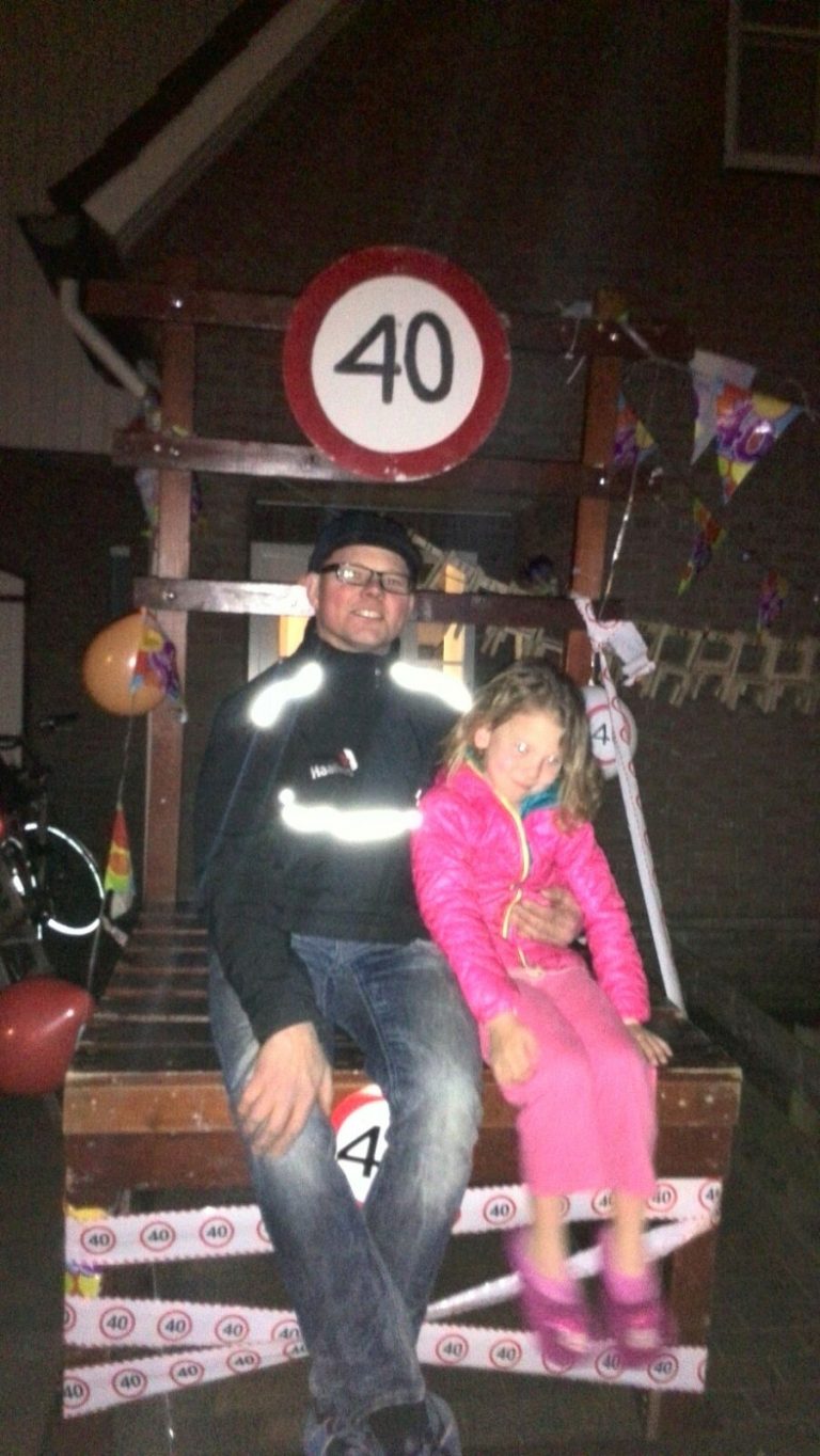 Brian Blokhorst, al enige tijd wonende in Haaksbergen, maar nog altijd een echte Wegdammer, wordt morgen 40 jaar. Ter gelegenheid hiervan kreeg hij een mooie stoel in zijn voortuin gezet, waarop hij met een grote glimlach plaatsnam. Brian is nog altijd zeer actief in Hengevelde waaronder bij Amuzant en Don't shoot.