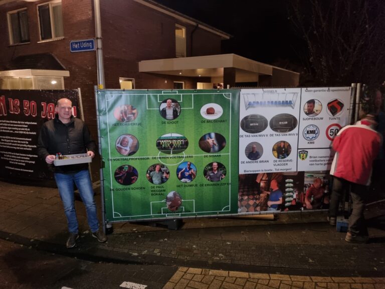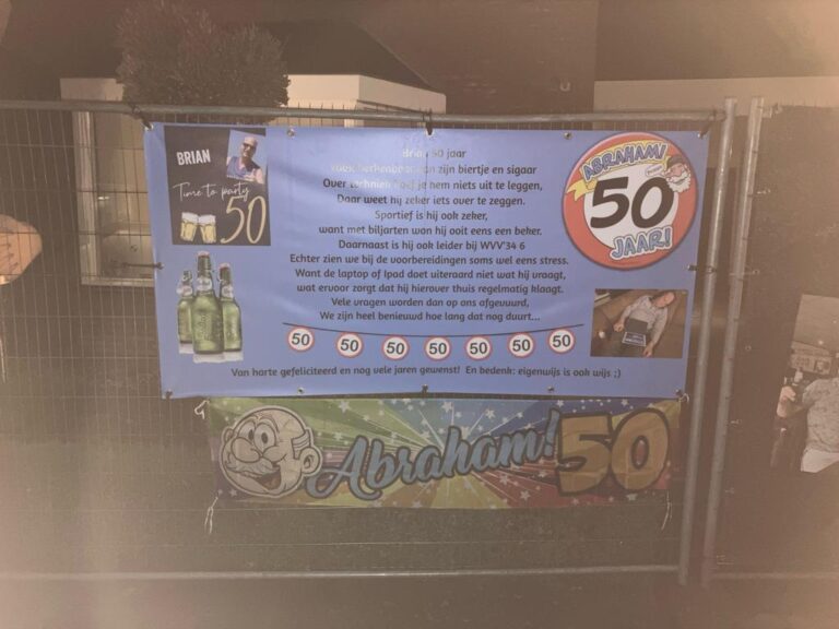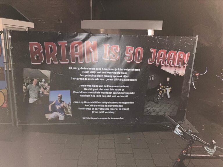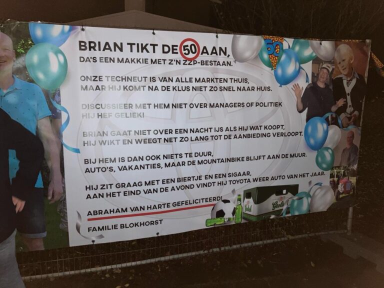Het is groot feest aan Het Uding, want Brian Blokhorst is 50 jaren jong geworden. Vele spandoeken maken zijn huis bijna onzichtbaar, maar wij hebben de foto’s! Ook via deze weg van harte gefeliciteerd Brian!