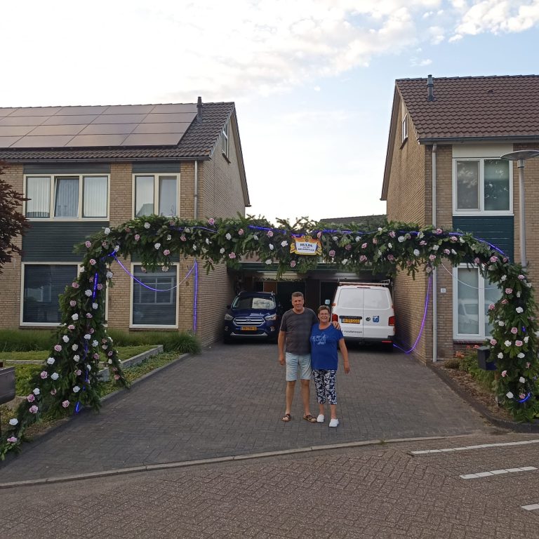 Het is feest aan de Elfersstraat vandaag, want Johan Pierik en Anneke Baltus stappen in het huwelijksbootje! Ter ere van deze bijzondere dag is er een prachtige boog geplaatst, als hartelijke verrassing van de buurt.