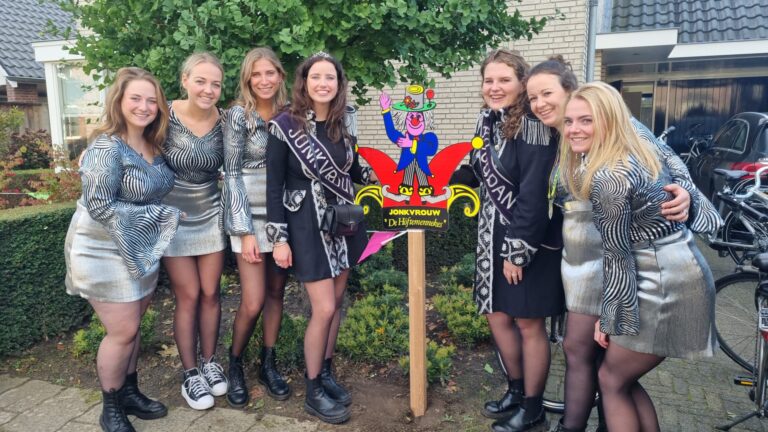 Jonkheer Wouter Goorhuis, adjudant Mart Wegdam, jonkvrouw Lauren ten Heggeler en haar adjudante Sofie Goorden hadden na de bekendmaking zaterdag ook zondag een feestje te vieren. Eigenlijk was het een formaliteit, want de borden zijn in de voortuin gezet. Het gezelschap van de carnaval maakte een mooie fietstocht voor het dorp om de formaliteiten af te handelen. Zij zijn eerst bij Sofie geweest, daarna Lauren, Mart en Wouter. Hieronder enkele foto’s: