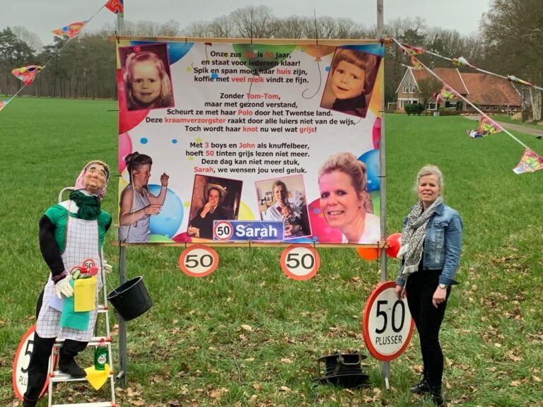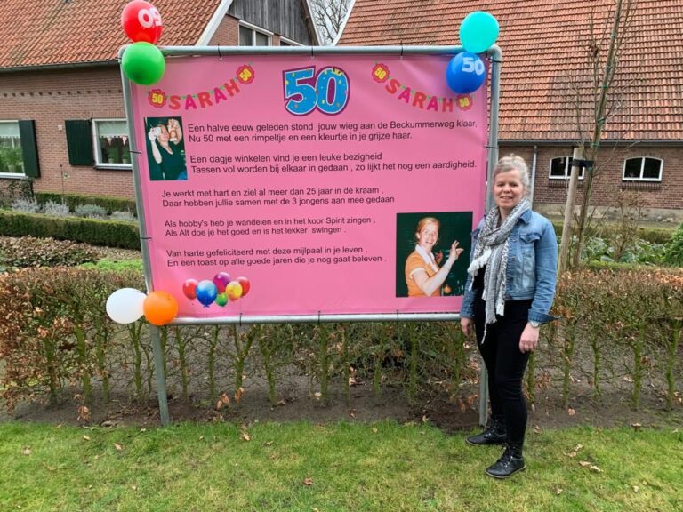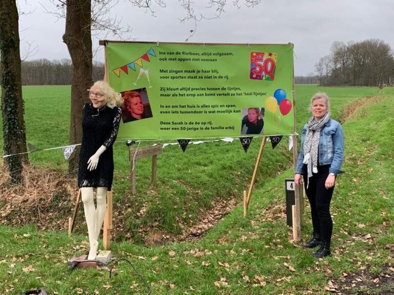 De buuf Eppingsbos is de klos, want Ina Blanckenborg is 50 jaar geworden! Zowel voor aan de weg (Nieuwe Dijk) als bij haar woning zelf staan mooie spandoeken. Namens de buren en de redactie van harte proficiat!