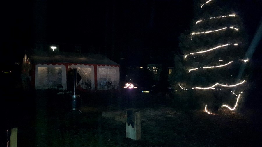 De Nieuwstraat is klaar voor de komende feestdagen. De centrale boom is weer verlicht. Jong en oud drinken met elkaar een borrel , met erwtensoep en baklever en bloedworst in de eigen tent!