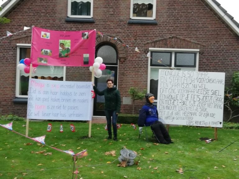 Monique ten Heggeler had een latertje gisterenavond op haar oude dag! De voortuin moest vol geplant worden met van alles en nog wat!
