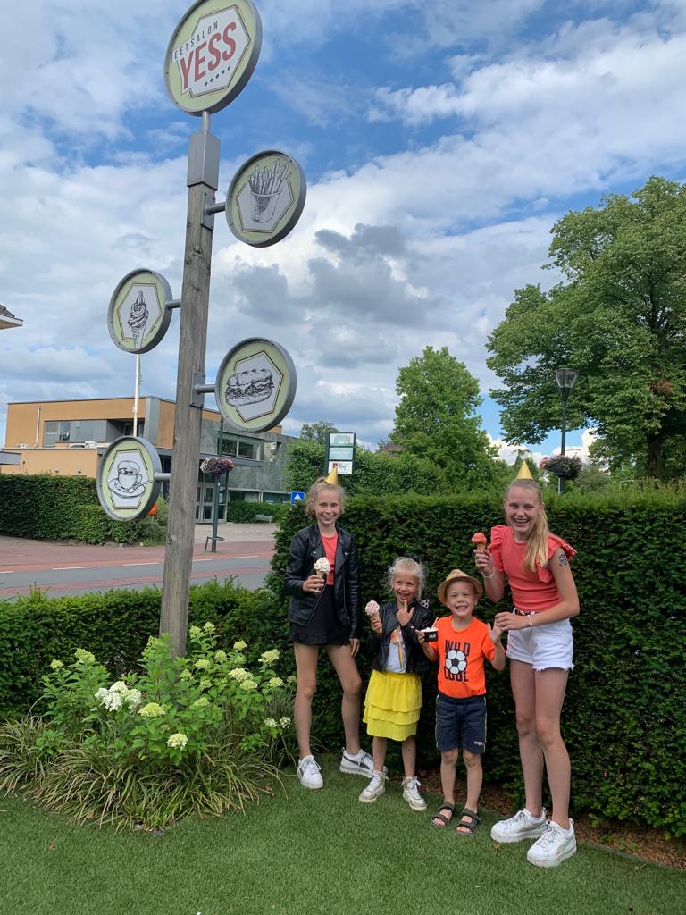 Net voor de zomervakantie was het feest voor Hessel, Fie, Elle en Emy. Hessel wilde heel graag met dit gezellige clubje uit eten bij Yess. Want vanaf volgend schooljaar zijn Elle en Emy niet meer op de Petrusschool te vinden. Zij gaan namelijk naar het voortgezet onderwijs. Het was een feestelijke en super gezellige middag met allerlei lekkere snacks en ijs van Yess!
