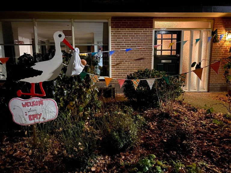 Donderdag 26 november is Emy ten Hove, het dochtertje van Debbie en Iwan ten Hove geboren. De tuin van de woning aan de Koenderinkstraat is prachtig versierd met de welbekende ooievaar. Namens de buurt en ook de redactie van harte proficiat!