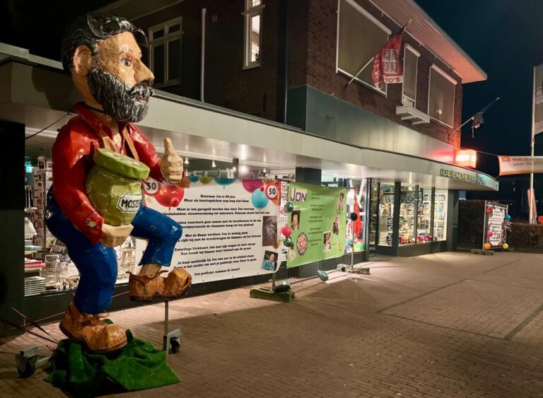 Het is groot feest aan de Hengeveldse boulevard (lees: Goorsestraat), want Jon Klein Breteler is 50 jaar! Hij weet nu waar Abraham de mosterd haalt en kreeg fraaie spandoeken voor woonhuis en winkelpand! Namens misschien wel het gehele dorp…. Van harte gefeliciteerd Jon!