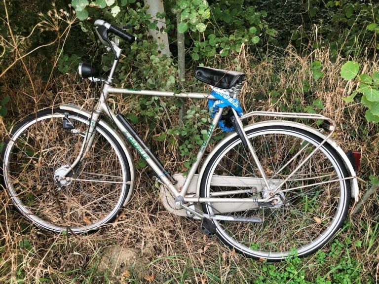 Bij de inrit van de ijsbaan aan de Gorsveldweg staat al enkele dagen een fiets, merk Gazelle, tegen de houtwal.