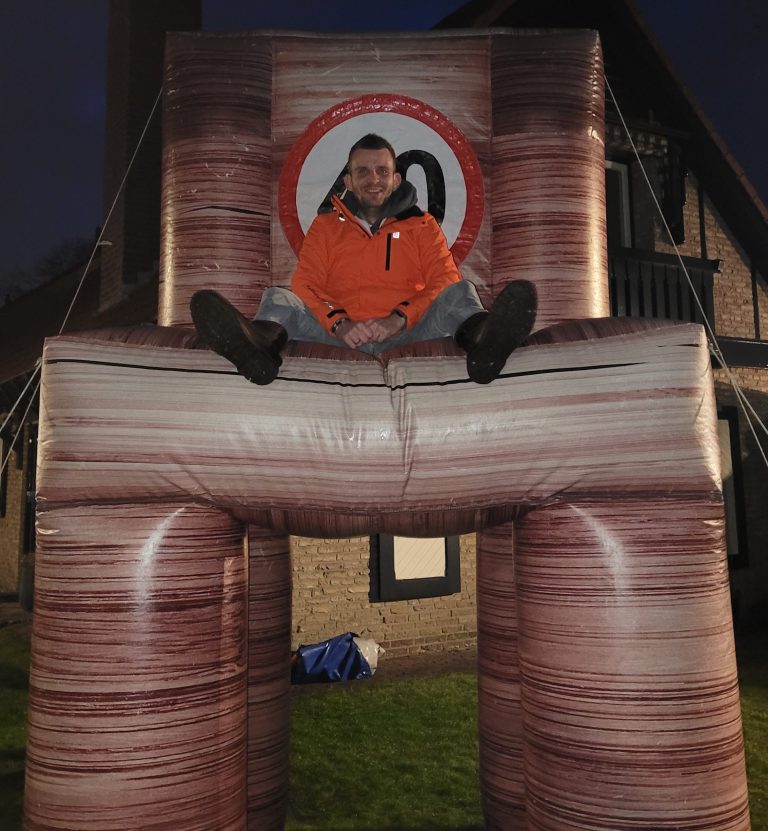 Frits Bauhuis, met zijn gezin woonachtig aan de Elfersstraat, is 40 jaar geworden! Volgens traditie kreeg de ondernemer, die dagelijks te vinden is bij zijn bedrijf Reggestad ICT in Goor, een grote stoel in de tuin. Ook namens de redactie van harte proficiat!