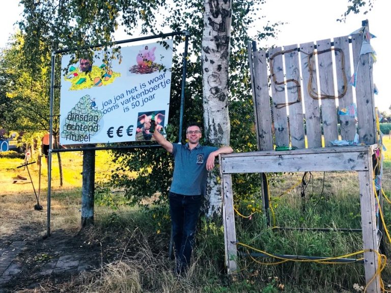 Gerben Maatman is 50 jaar geworden, en de collega’s van Doeschot constructie hebben ook van zich laten horen. Donderdag avond hebben de collega’s de tuin even ‘iets aangepast’. Gerben, die het zich kan veroorloven om dinsdag ochtend uit te slapen en deze tijd besteed aan het tellen van geld en andere financiële bezigheden ( zie foto )