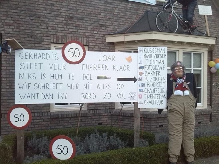 Gerhard Breukers is 50 jaar geworden. De alleskunner, woonachtig aan de Walstraat in Hengevelde, kreeg vele borden in zijn tuin. Ook namens de redactie van harte proficiat!