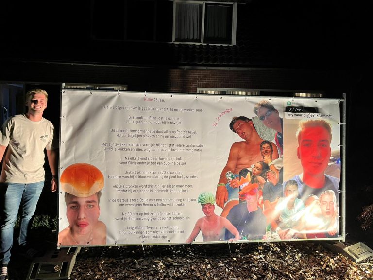 Wie hem op zondagochtend ziet schitteren in Koninklijk 7 bij WVV’34 (ook wel het 7e genoemd door sommigen) zou het niet zeggen, maar Gijs Velthuis is 25 jaar geworden. De kapstok in het voetbalveld en bouwvakker in het dagelijks leven kreeg van zijn vrienden het welbekende spandoek in de voortuin. Ook namens de redactie van harte proficiat Gijs!