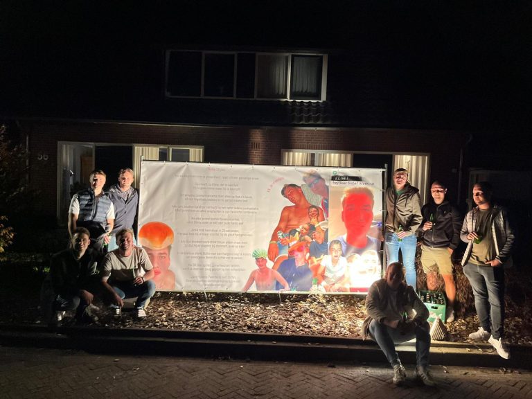 Wie hem op zondagochtend ziet schitteren in Koninklijk 7 bij WVV’34 (ook wel het 7e genoemd door sommigen) zou het niet zeggen, maar Gijs Velthuis is 25 jaar geworden. De kapstok in het voetbalveld en bouwvakker in het dagelijks leven kreeg van zijn vrienden het welbekende spandoek in de voortuin. Ook namens de redactie van harte proficiat Gijs!