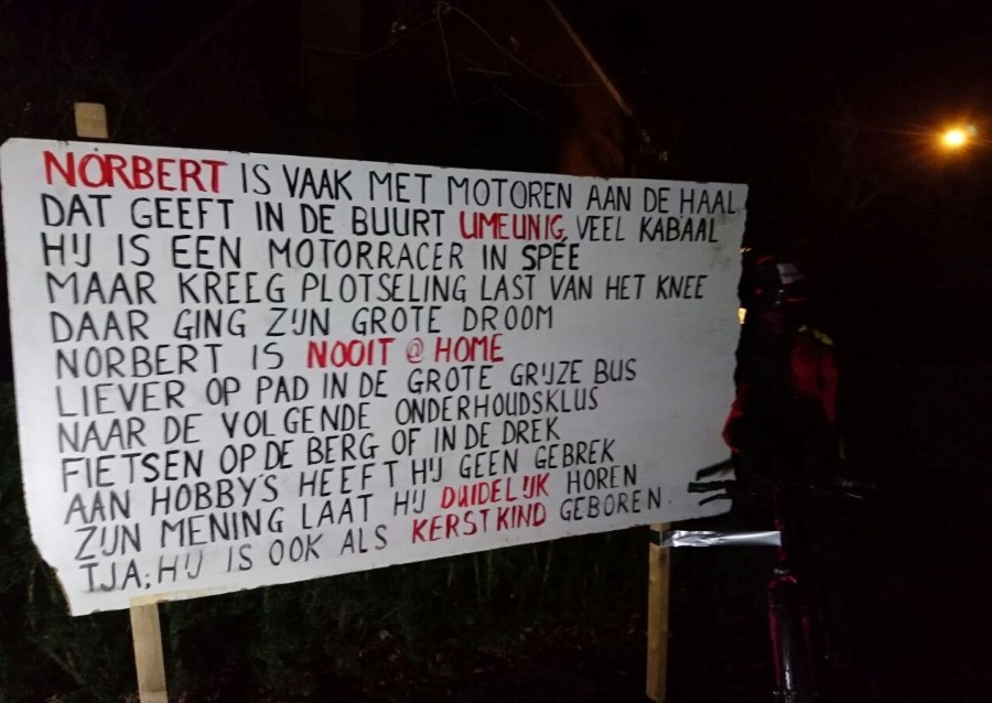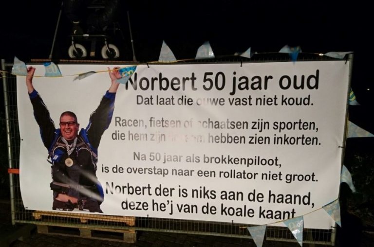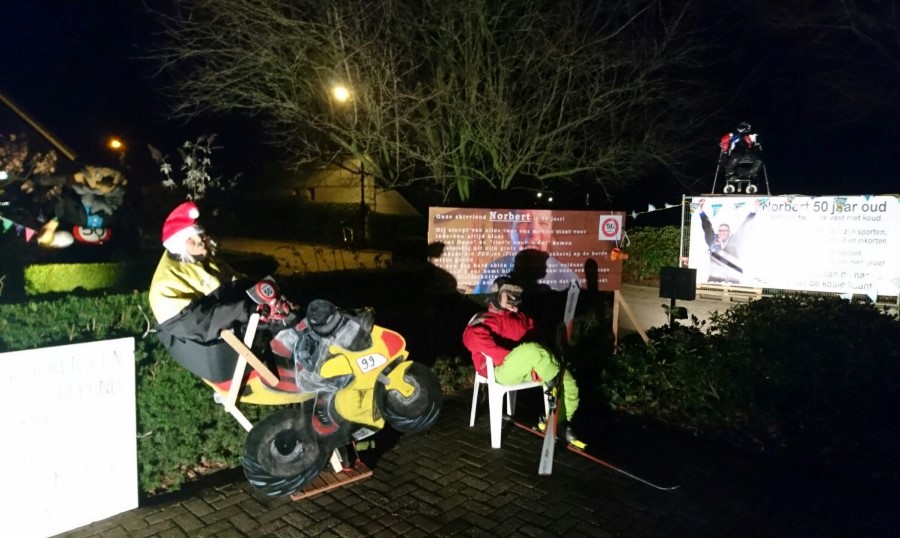 Norbert ten Vregelaar, de fietsende hardlopende motorliefhebber heeft op 25 december de leeftijd bereikt waarop men in Twente de voortuin volplant met allerlei teksten! Zo ook hedenavond, familie buren vrienden en bekenden laten de wereld weten dat de “brokkenpiloot” 50 jaar is geworden!