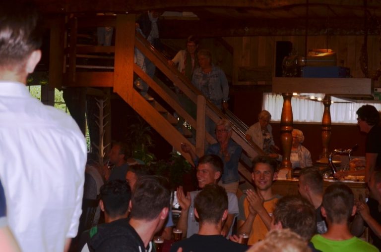 Tijdens de evaluatie van de afgelopen weekenden, in een volle zaal bij de Gebrande Waateren kwamen het dames en herenkoor de trap af naar beneden na de repetitie. De 150 aanwezigen staken hun waardering niet onder stoelen of banken en in beide gevallen volgde er een langdurig en luid applaus. Er was zelfs sprake van een erehaag. De ludieke actie is gefilmd, klik op de linkjes hieronder!