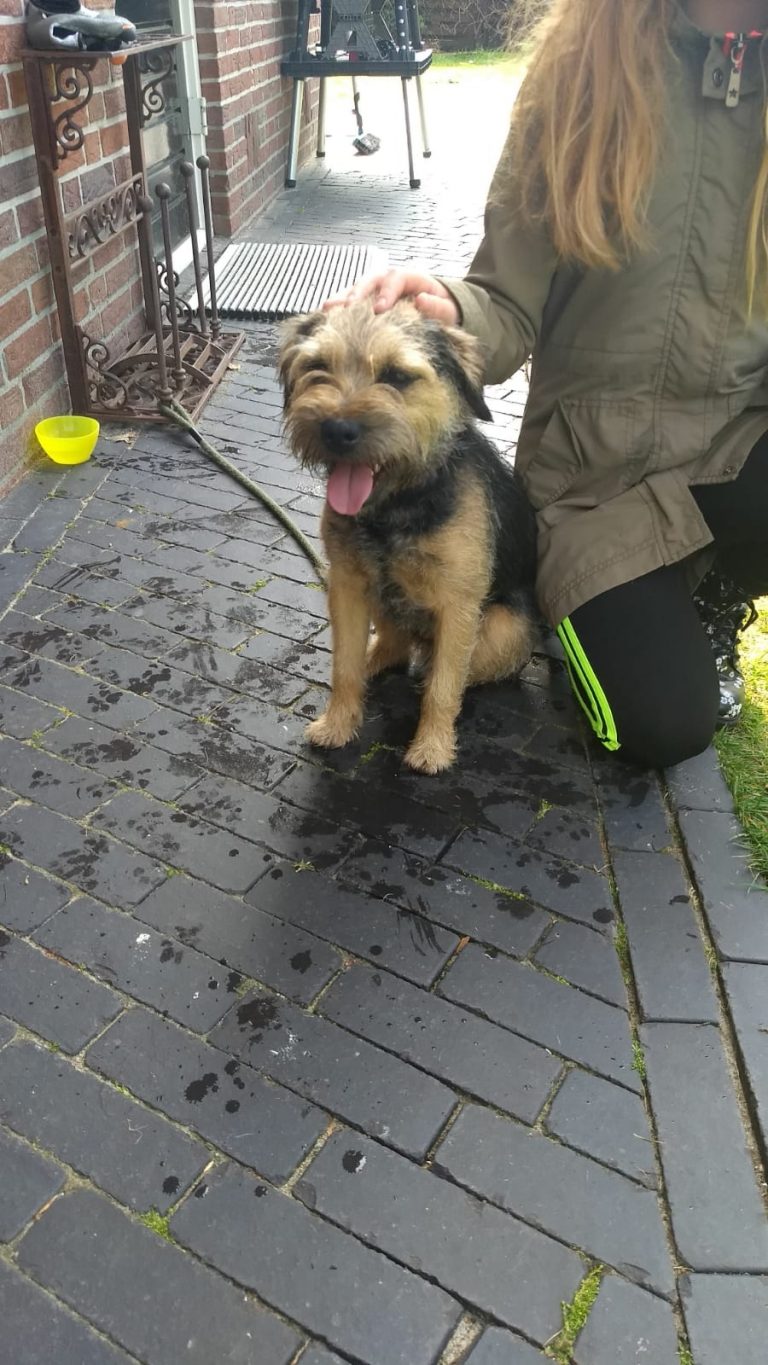 Bovenstaande hond is vanmorgen aan komen lopen. Bent u de eigenaar? Graag ophalen aan de Koenderinkstraat 6 in Hengevelde.