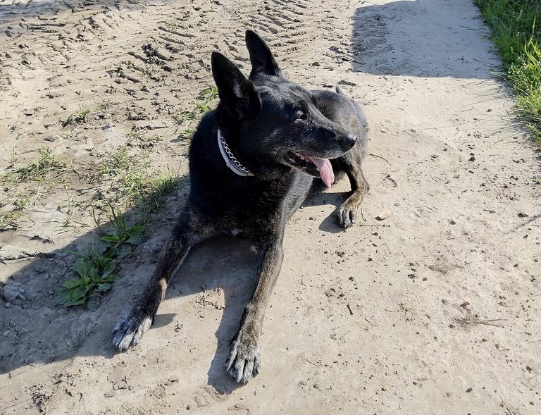 Zazou is een zwarte, Hollandse herder teef, iets grijzend om de neus. Staart is gebroken geweest en heeft daardoor een gekke knik. Hond is erg aanhankelijk en lief.