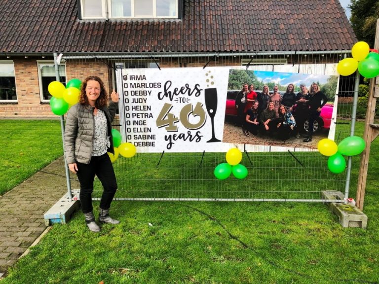 “Onze vriendin Irma Epping is vandaag 40 jaar geworden. Wij hebben vanmorgen namens de vriendinnen bovenstaande spandoek geplaatst.