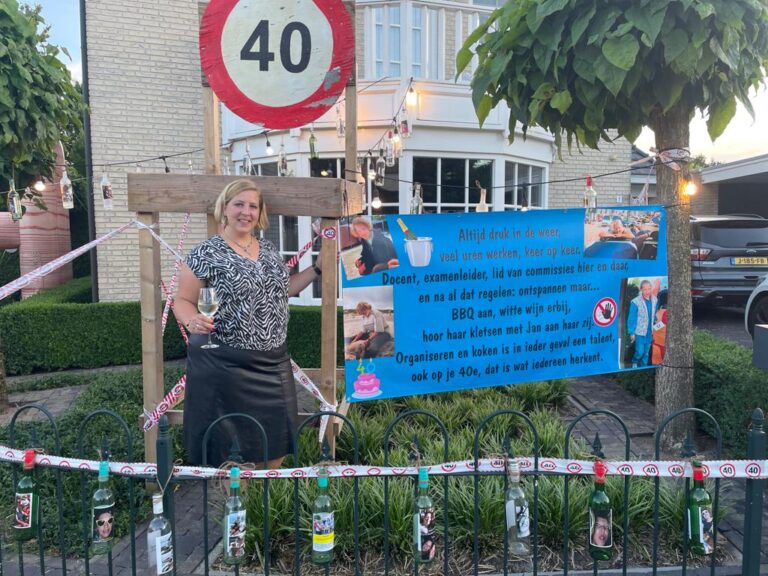 Manon Semmekrot vandaag 40 jaar! Dat heeft haar de symbolische mega stoel in de voortuin opgeleverd!