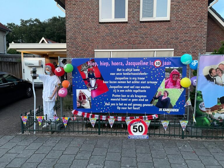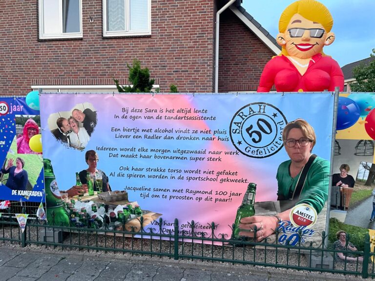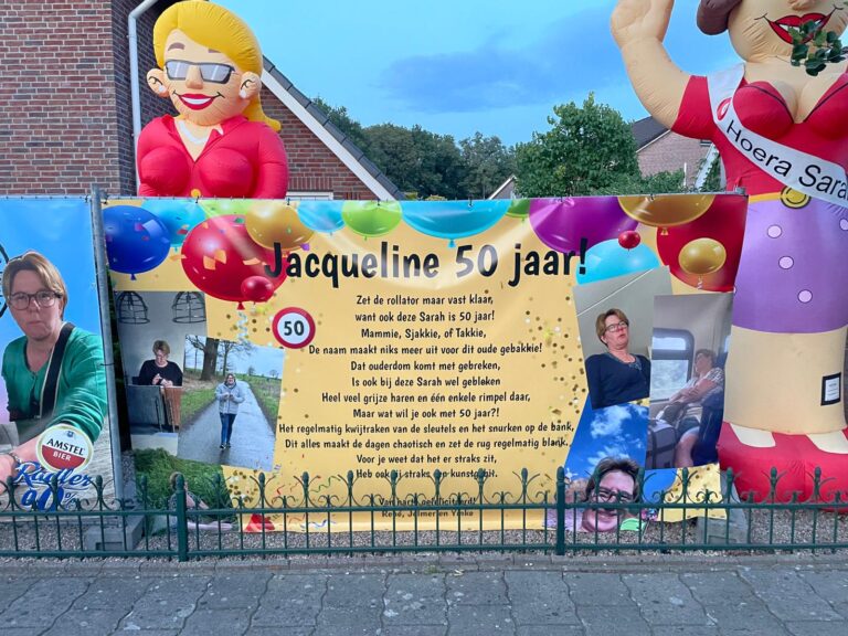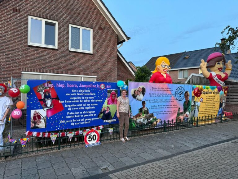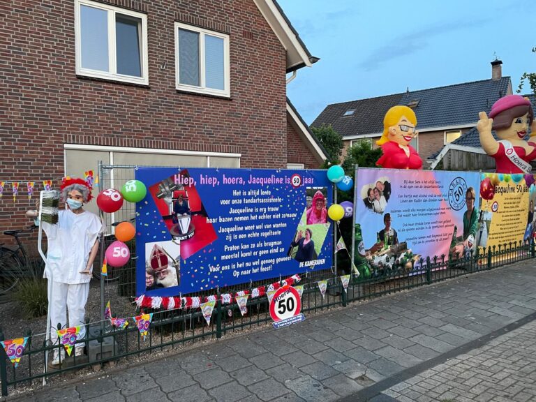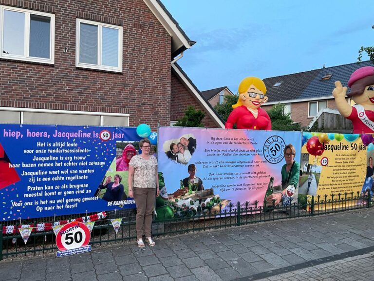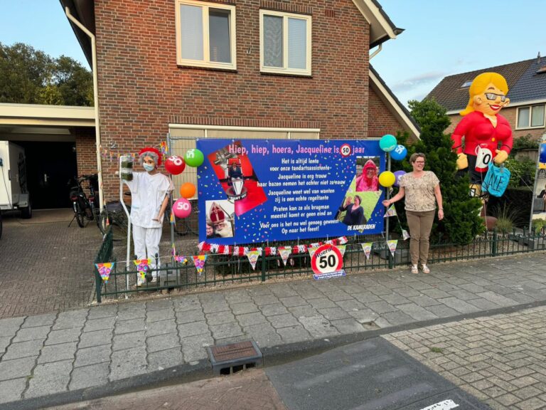 We schreven al dat Raymond ten Dam 50 jaar is geworden, maar ook tweelingzus Jacqueline Nibbelink – ten Dam ontkomt er niet aan. Ook aan Het Markslag is het dus feest.