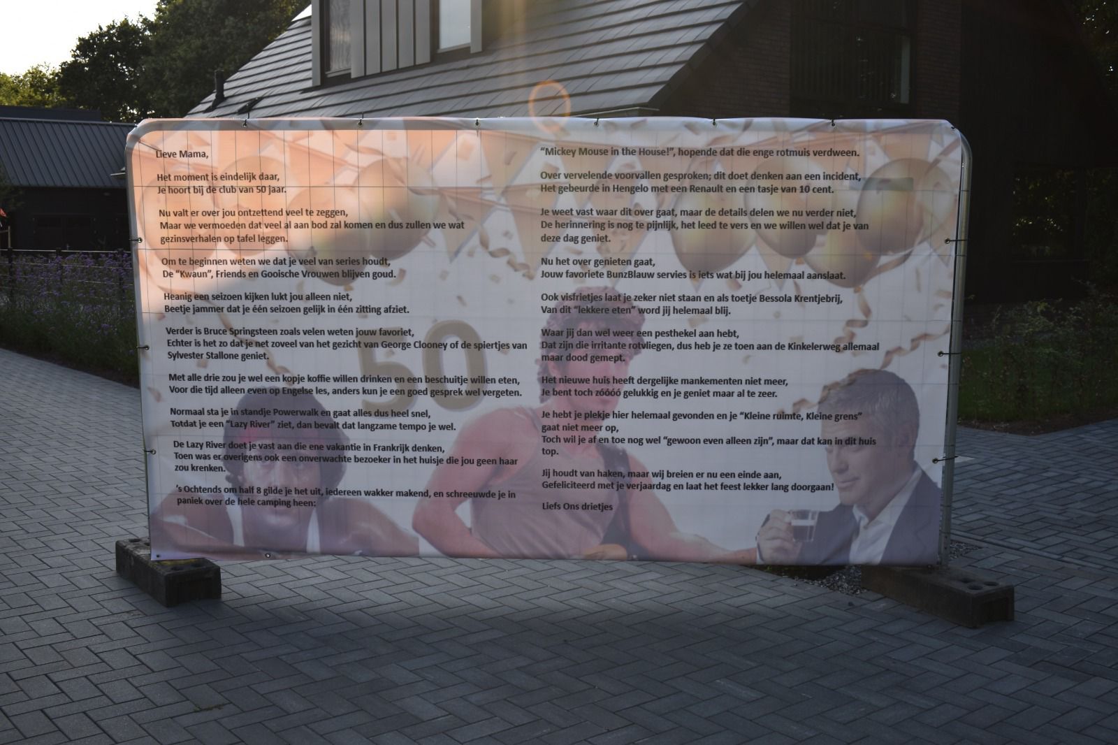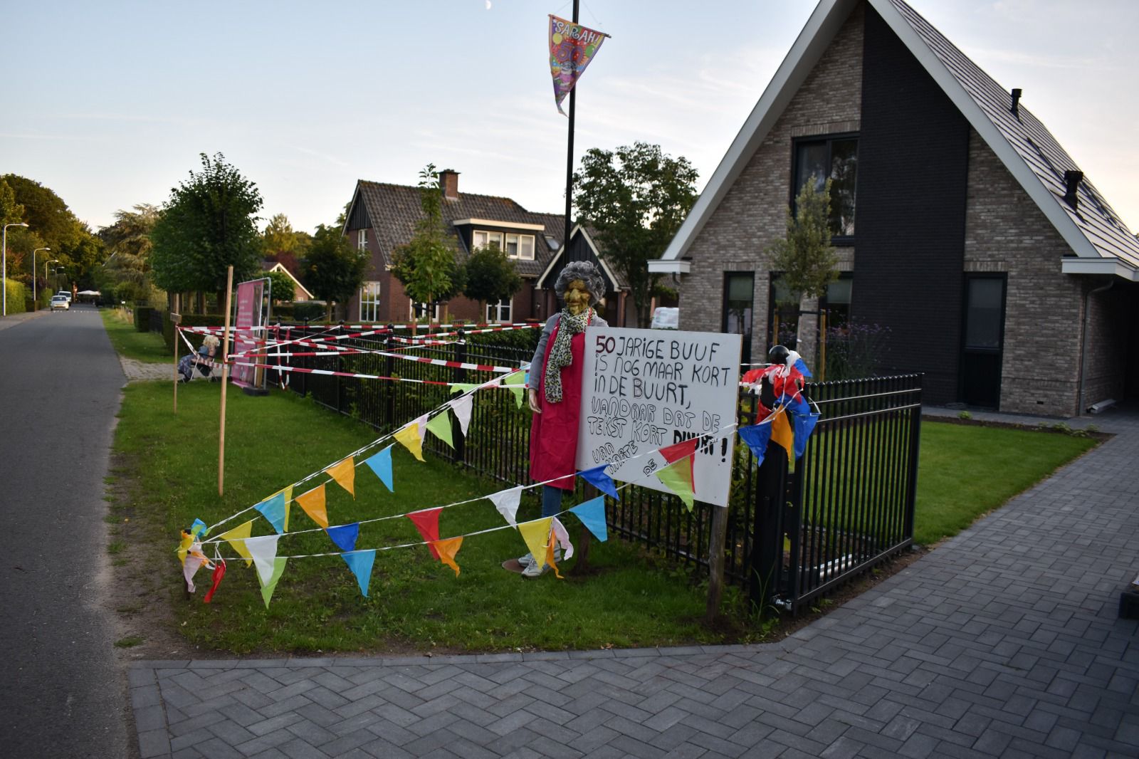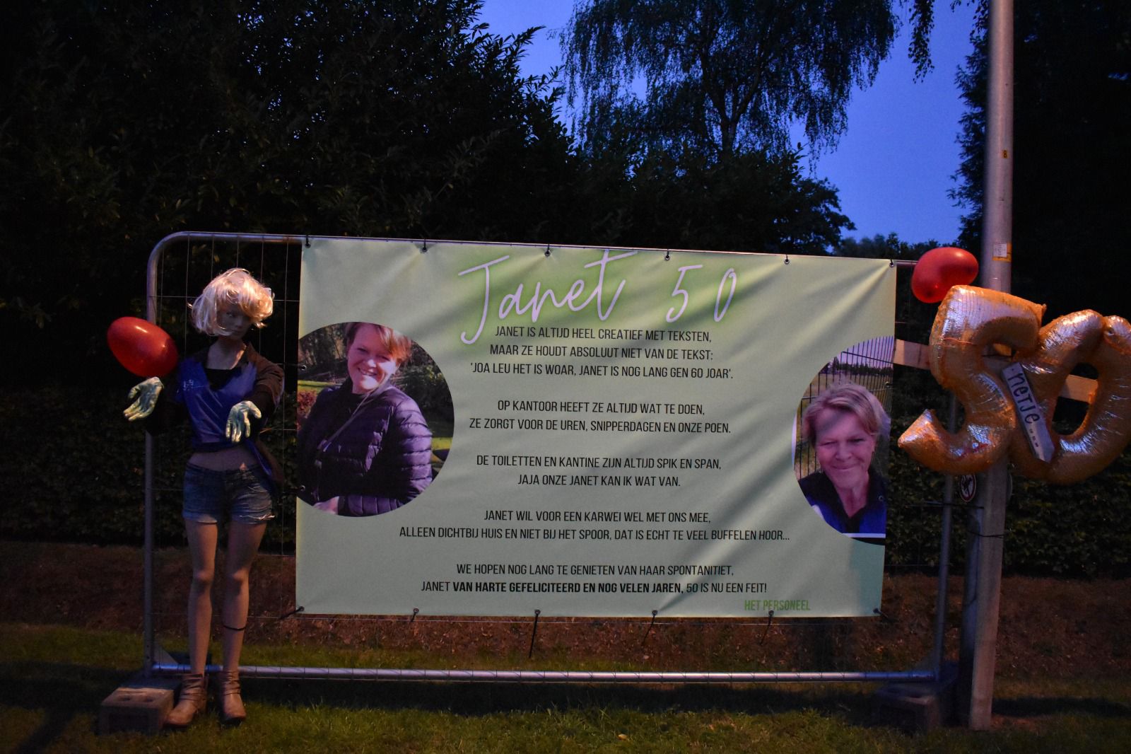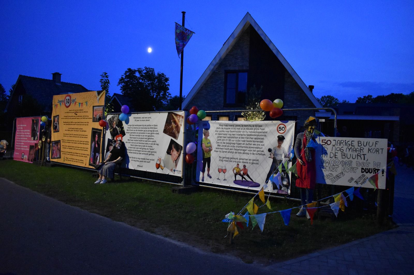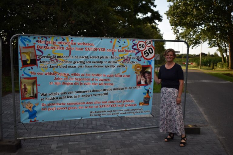 Janet Koenderink, woonachtig aan de Wethouders Goselinkstraat, voor sommigen nog genoemd de Schoolstraat, is 50 jaar geworden. De tuin stond met linten al even afgebakend, maar sinds woensdagavond is het huis door de vele spandoeken amper nog zichtbaar. Ook bij de Loopgroep Hengevelde waar Janet zeer actief is, ging de 50e verjaardag niet onopgemerkt voorbij!
