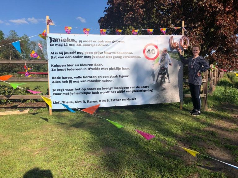 Janieke van de Kluempe is 40 jaar. Haar vriendinnen vonden het een mooie gelegenheid voor een ludiek bordje!