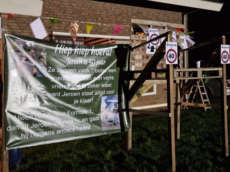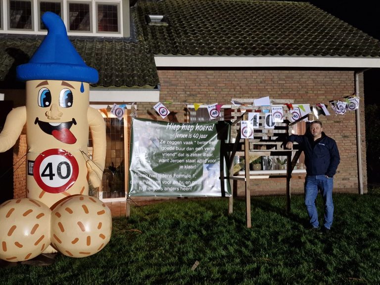 Jeroen Slot, woonachtig aan de Haaksbergerstraat is 40 jaar geworden. Hier staat dan ook de welbekende stoel in de tuin. Namens vrienden, buren, familie en de redactie van harte proficiat!
