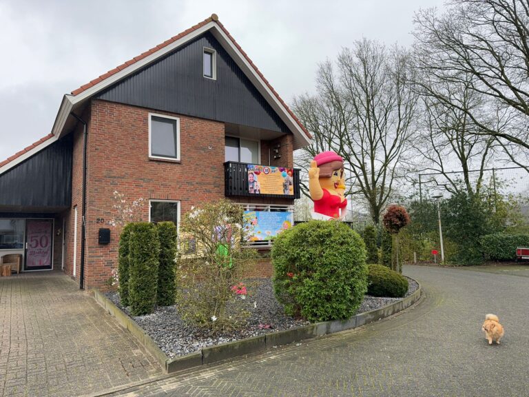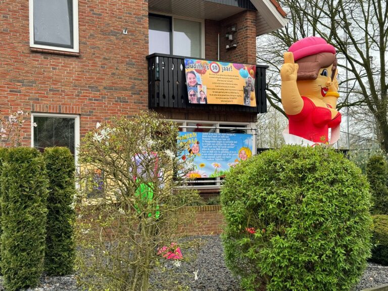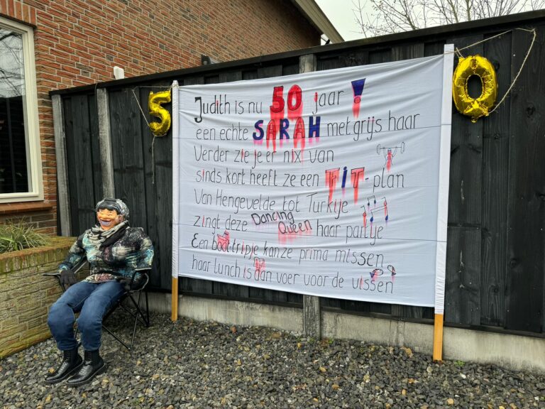 Dat gaat niet onopgemerkt voorbij, want de hele tuin staat vol met spandoeken en de welbekende Sarah. Ook namens de redactie van harte gefeliciteerd!