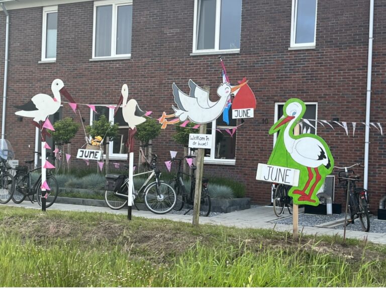 Hengevelde is zich flink aan het uitbreiden, zo ook aan Snakenborg waar Kasper Put en Rikke Brummelhuis de trotse ouders zijn geworden van een dochter genaamd June. Het is het eerste kindje van het stel en de tuin is al mooi versierd met ooievaars en borden. Namens vrienden en uiteraard ook de redactie van harte proficiat!