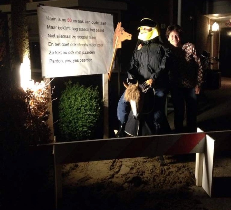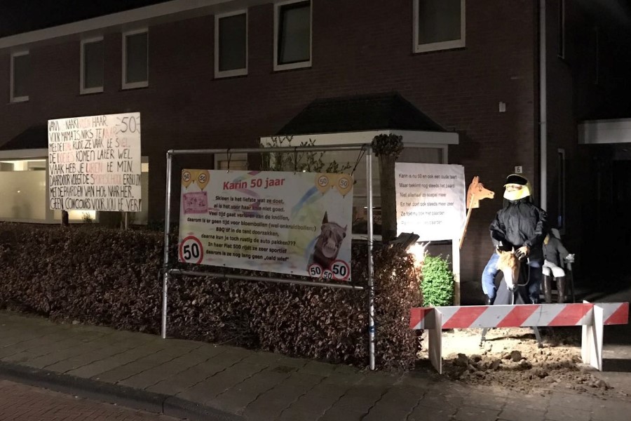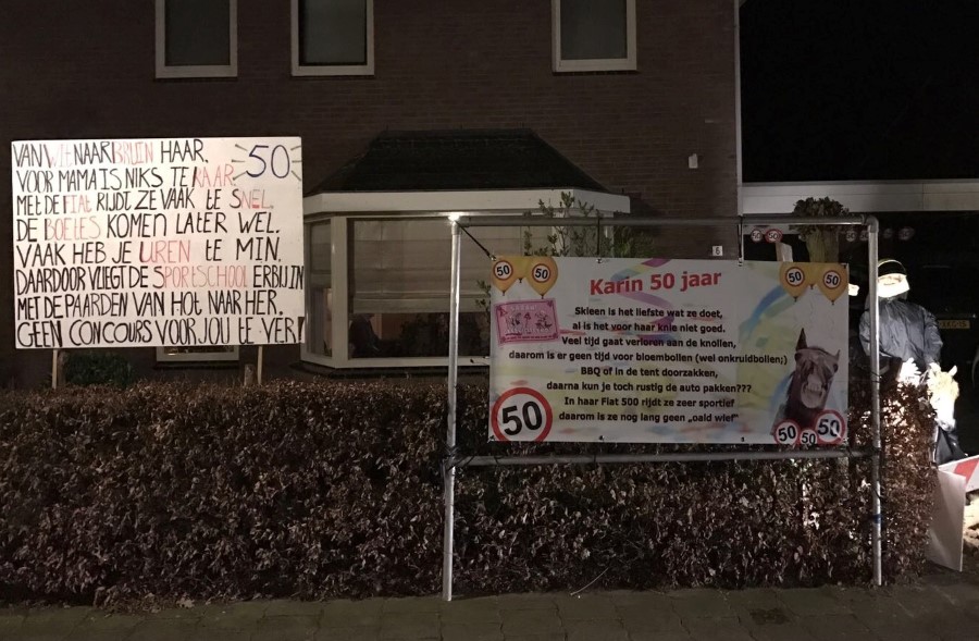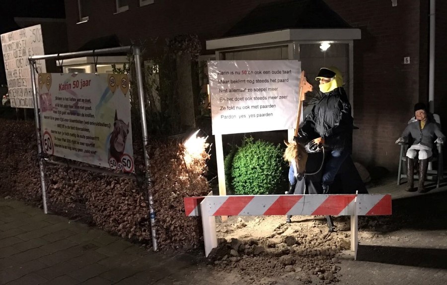 Karin ten Heggeler is vandaag 50 geworden. Gisterenavond is bij haar de voortuin vol gezet. Gefeliciteerd namens de familie, de buurt en natuurlijk de redactie!