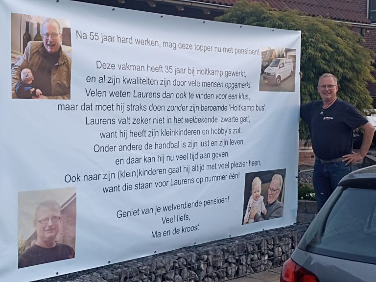 Het is groot feest aan de Bomhof, want Laurens Beld mag gaan genieten van zijn pensioen! Jaren was hij actief bij Holtkamp Bouw, maar daar komt nu een einde aan. Vrienden, familie en collega’s hebben dit niet onopgemerkt voorbij laten gaan en Laurens kreeg een feestelijke laatste dag. Ook wij wensen hem veel geluk toe en geniet van de vele vrije tijd die je te wachten staat.