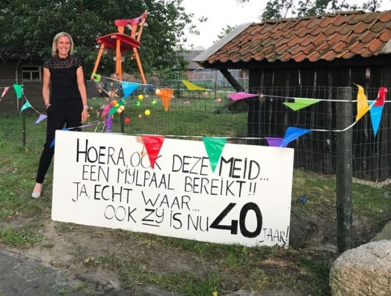 Ook Lisette ten Breteler heeft (bijna) haar mijlpaal bereikt! Aanstaande zaterdag is ze 40 jaren jong! Dit weekend hebben de vriendinnen natuurlijk geen tijd om een stoel te zetten en hebben andere prioriteiten, dus die staat er alvast. Feliciteren kan dit weekend in de tent! Namens je vriendinnen,