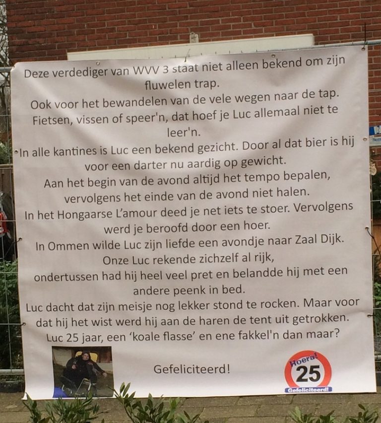 Ook Luc Eijsink ontkwam er niet aan en vond onderstaande tekst is zijn voortuin in de Nieuwstraat!