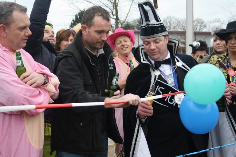 De leden van de Carnavalvereniging zaten Stephan ter Doest te stangen dat half Hengevelde bij zijn nog te openen pand stond te wachten voor de grote happening, en zo geschiedde! Niet de officiële opening, wel de happening! Bussen vol carnavalliefhebbers arriveerden na het bezoek aan het gemeentehuis en café de Ster bij zijn bedrijf in aanbouw.