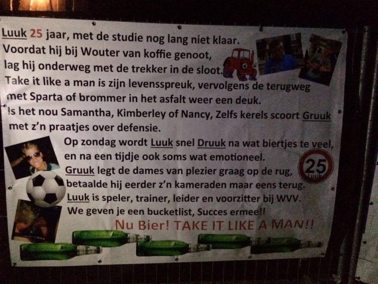 Luuk ten Heggeler is zojuist 25 jaar geworden. Van zijn vrienden kreeg hij twee mooie borden in zijn tuin aan de Wethouder Goselinkstraat. Omdat die vrienden hem zo waarderen hebben ze bovenstaande tekst en onderstaande bucketlist voor hem samengesteld. Ook namens de redactie van harte proficiat!