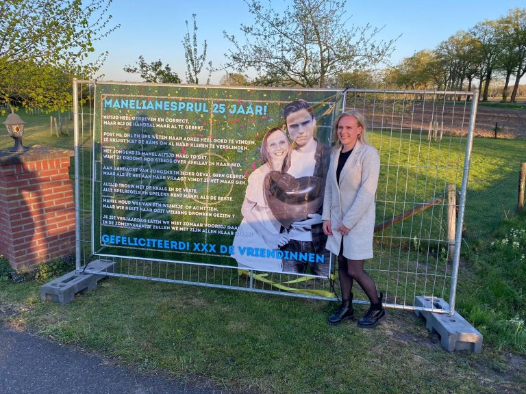 Manel ten Thije, woonachtig aan het einde van de Slotsweg in Hengevelde, is vandaag 25 jaar geworden. Gisterenavond kwamen haar vriendinnen (met inachtneming van de 1,5-regel) even langs om mooie borden neer te zetten. Ook namens de redactie van harte proficiat!