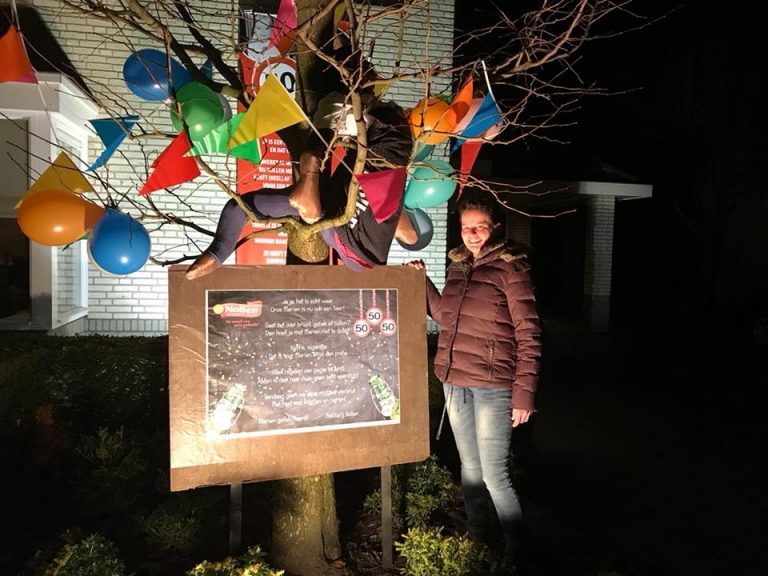 Ook haar collega's van Bakkerij Nollen wilden dit niet onopgemerkt voorbij laten gaan (foto boven) en hebben vanavond als eerste een mooi bord in de tuin gezet, ze moeten allen natuurlijk weer vroeg uit de veren!