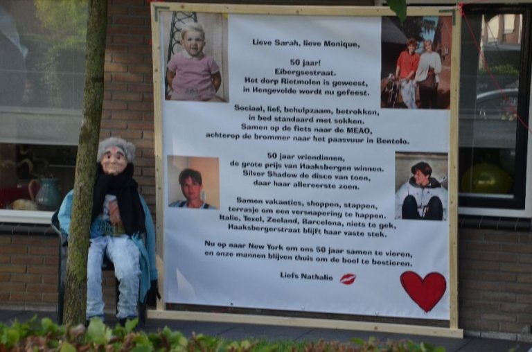 Monique Rotink-Groninger, woonachtig aan de Haaksbergerstraat naast het in de wijde omtrek bekende familliebedrijf, is 50 jaar geworden. Van vrienden en familie kreeg ze mooie spandoeken in de tuin om het feit dat ze 'Sarah heeft gezien'. Ook namens de redactie van harte proficiat en alvast heel veel plezier gewenst in New York! (zie spandoek voor meer info).
