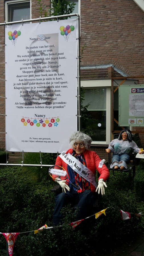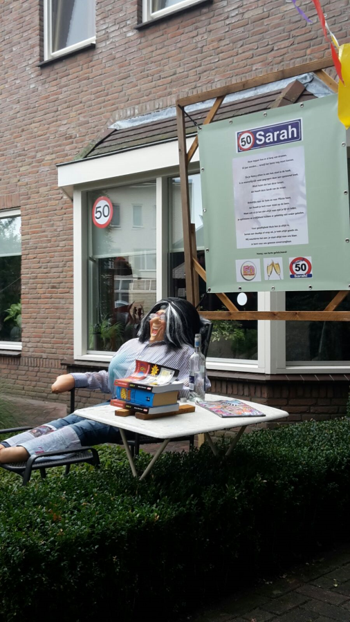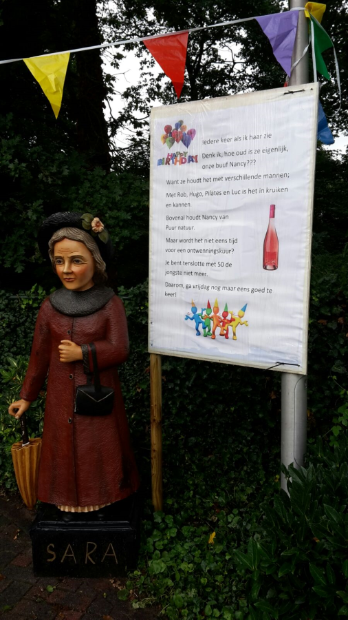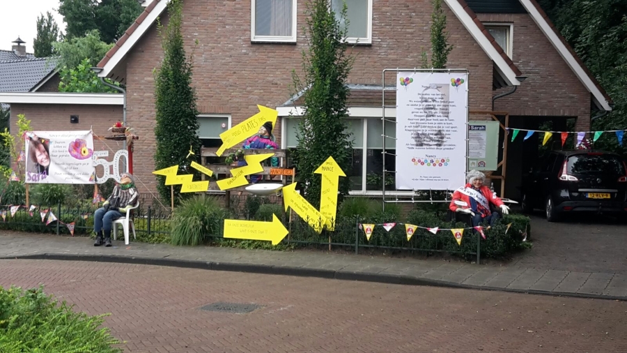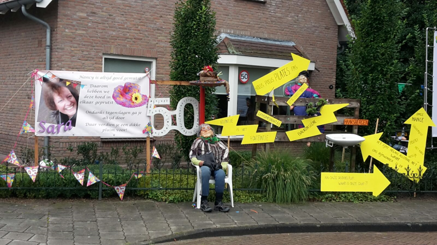 Nancy Slootman-Roetgerink, geboren en getogen in Hengevelde heeft vandaag Sarah gezien! En dat moet natuurlijk gevierd worden! In weer en wind werd gisterenavond het een en ander in de voortuin geplaatst.